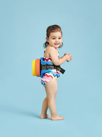 The 3-2-1 Swim Pack is more than just a swimming aid—it's a smart swim trainer that adapts as your child learns and grows. It is designed for children as young as 6 months and those who weigh up to 66 lbs/30 kg.